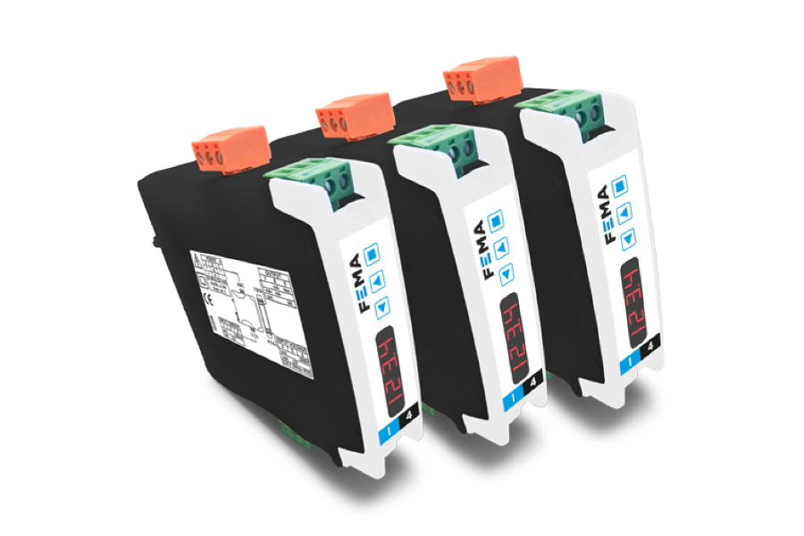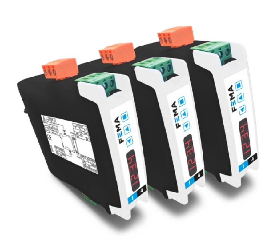 El I4F de FEMA es un convertidor de señal aislado para señales de frecuencia, impulsos, RPM y caudal, con salida de señal en 4/20mA y 0/10Vdc y aislamiento a 3 vías.