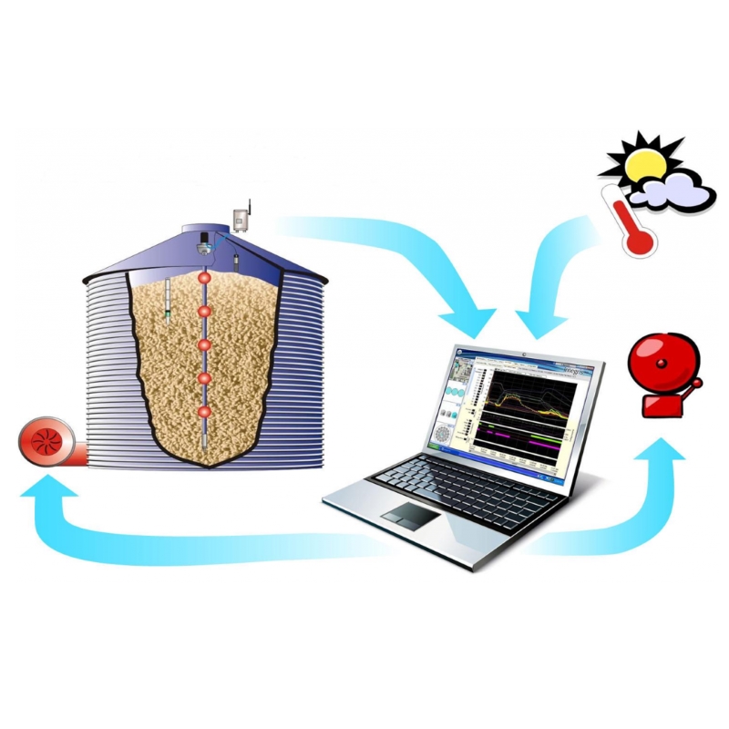 Acceda a información vital sobre su grano utilizando su PC o conexión a Internet. El formato de informes fácil de usar presenta imágenes y gráficos que detallan los aspectos más importantes de su almacenamiento de grano. Reciba notificaciones de alarmas de varias maneras, incluyendo en pantalla, en el sitio, mensajes de texto y correo electrónico.